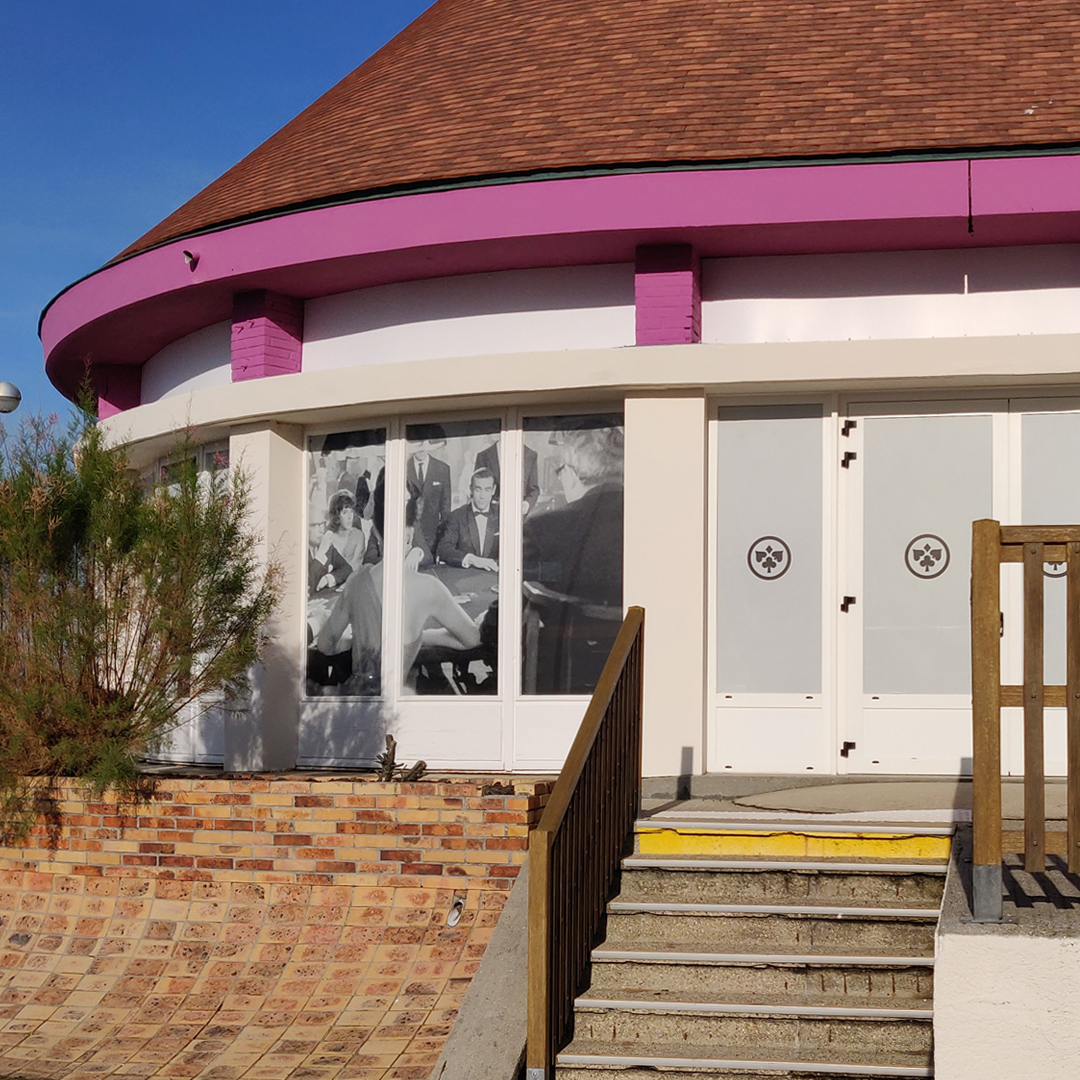 Impression et pose d'une signalétique au Casino JOA de Fécamp, où de mythiques scènes nous replongent dans l'univers des casinos au cinéma.